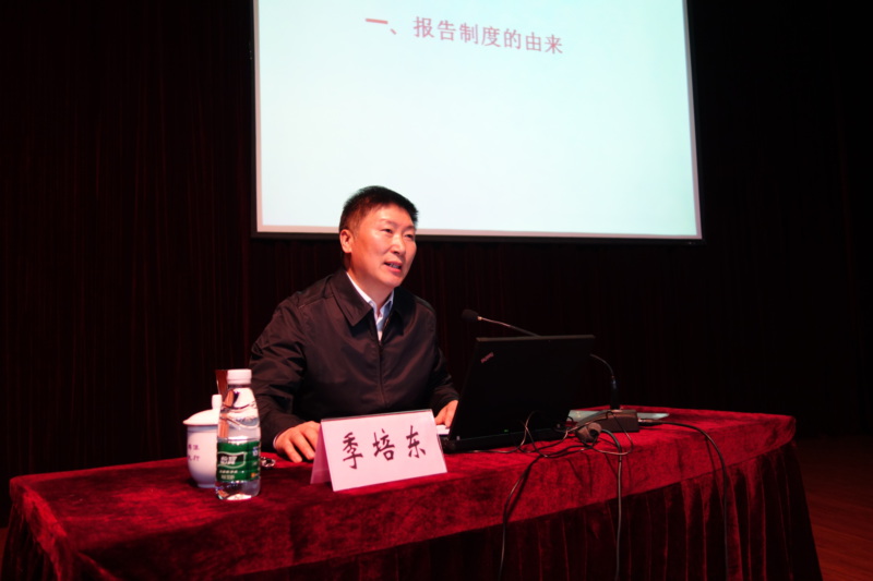 专题辅导会上,季培东详细阐述了报告制度的由来、体系和发展方向。2006年9月,中央办公厅印发《关于党员领导干部报告个人有关事项的规定》,明确要求县处级以上党员领导干部,每年向组织集中报告一次个人有关事项。近年来,随着此项工作的不断推进和完善,中央逐步构建起有明确规定、切实办法和详细操作规程的制度体系。季培东指出,此项工作流程严密、执行严格、查处严厉,有效检验了干部的忠诚度和干净度,对干部队伍的纯洁度起到了很好的监督作用。针对部分领导干部在填报个人有关事项时遇到的一些实际疑问,季培东从填报事项和填报环节等角度进行了详细解读,帮助全校中层干部在正确领会中央精神的基础上在执行和操作层面进行了具体辅导。