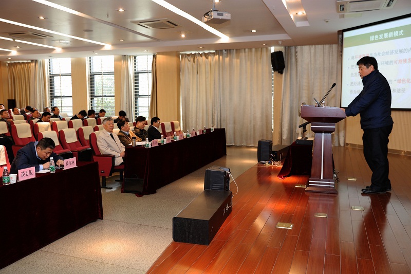 报告中,任洪强教授指出,“绿色发展”是一种新型发展模式,其核心是解决人的发展与自然环境及资源承载力之间的矛盾,实现经济社会的可持续发展。“绿色发展”是当前中国经济实现转型的战略抉择,是应对国际竞争,培养新的经济增长点、保持经济持续发展,改善人居环境的迫切需要,体现了党的最高决策与国家发展战略。任洪强教授详细梳理了党的十八大以来以习近平同志为总书记的党中央对生态文明建设的相关论述。他指出,从党的十八大报告提出的经济建设、政治建设、文化建设、社会建设、生态文明建设五位一体总体布局,到十八届五中全会提出的加大环境治理力度,以提高环境质量为核心,实行最严格的环境保护制度,深入实施大气、水、土壤污染防治行动计划,再到《中共中央国务院关于加快推进生态文明建设的意见》、《国民经济和社会发展第十三个五年规划纲要》、《国家环境保护“十三五”规划编制基本思路》以及最严格环境保护制度的制定实施,“既要绿水青山,也要金山银山”的绿色发展理念正逐步贯穿到我国社会、经济、生活建设及发展的方方面面。