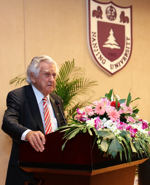 霍克随后谈及中国的发展、澳大利亚和中国发展的关系,以及在地区安全和国际安全的发展中这两者的地位。 他说,1986年是他带着欣赏与敬畏的心情第三次来到中国。时至今日,当他第103次踏上中国这片国土,那份欣赏和敬畏依旧存在心间,有充足的理由做出这样的判断——1978年邓小平做出的改革开放的决策是20世纪全世界领导人在和平时期做出的最重要的决策。中国连续10%的经济增速使得五亿多人脱离了贫困。虽然经济和社会发展对中国人民的影响已经广为人知,但是经济发展所带来的国际影响也不容小觑。