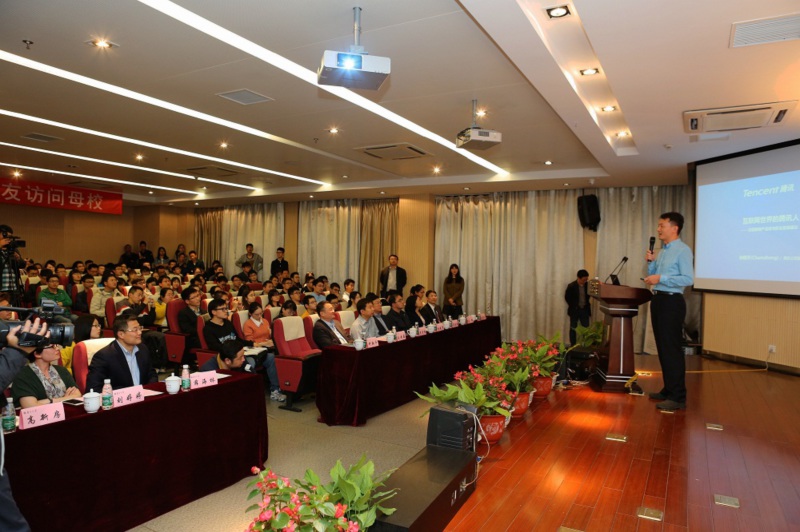 在题为“互联网世界的腾讯人——谈互联网产品观与职业发展建议”的报告中,通过“选择”、“行动”和“时代”三个部分,钟翔平校友分享了求学、奋斗的经历以及腾讯业务取舍背后的故事,并鼓励学弟学妹们在移动互联网飞速发展、颠覆式的创新永远都在发生的时代,要对未来的机会充满信心,面对发展加速、包容多样的世界,在最好的时代拥抱并开创新的时代。
