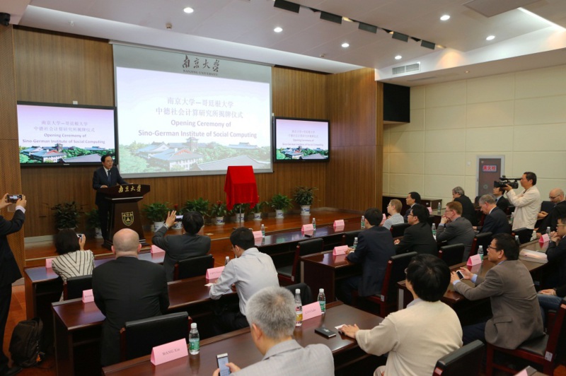 哥廷根大学吴志学校长在发言中回顾了两校共同成立的中德法学研究所、中德比较文化、跨文化日耳曼学研究所和哥廷根大学学术型孔子学院的发展历程。他表示,中德社会计算研究所是两校第一次汇集自然科学、计算机科学、社会科学、生命科学等各领域学者的跨学科科研机构,也是两校合作进程中的巨大一步。