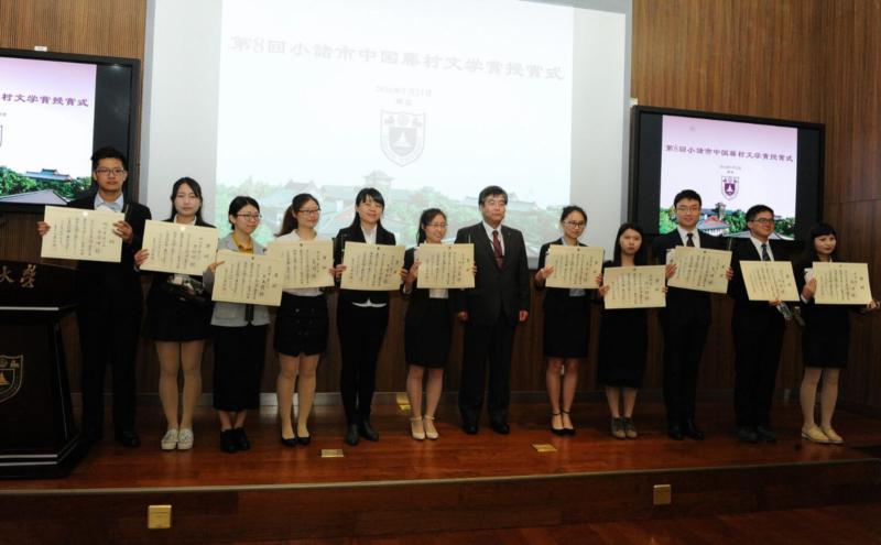 我校日语系叶琳老师介绍了此次文学奖的审查经过,日语系王奕红主任宣读了此次藤村文学爱读奖和翻译奖的人员名单。在简洁而隆重的颁奖仪式后,我校外国语学院杨金才院长和小诸市议会议长相原久男分别发表贺词。