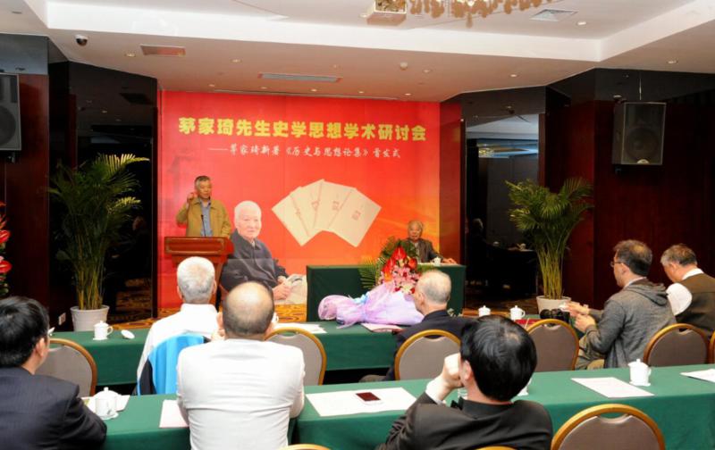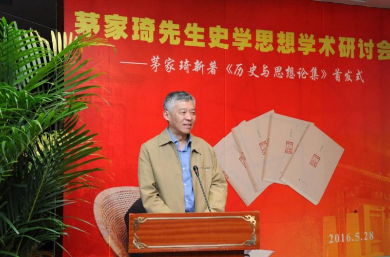 茅家琦先生在主旨演讲中介绍了他近十年的学术研究工作。他说,一直在思考如何将《中国思想家评传丛书》中的两百位思想家的基本思想运用到历史研究上去,来论述思想与历史发展的关系问题。他先后出版了三本书:《思想文化与社会发展》、《桑榆读史笔记——人生论、认识论与中国近代史》和《思想合力构筑历史》,这三本书汇总而成《历史与思想论集》。《思想文化与社会发展》一书主要论述了人文精神与中国历史发展关系问题;《桑榆读史笔记——人生论、认识论与中国近代史》从人生论与认识论两个方面讨论中国近代历史上的若干问题;《思想合力构筑历史》论述了思想合力构铸历史,“思想构铸历史”有四个不可缺少的环节:构铸历史的思想(系统化的社会意识形态)、构铸历史的主体(包括人民群众和英雄人物)、构铸历史的方式(包括和平改革和武装斗争)和最后构铸成的历史实际。他特别呼吁学者要重视提高中西哲学的修养,“从哲学中吸取思想智慧”,同时,坚持真理、修正错误是学者应有的治学态度。