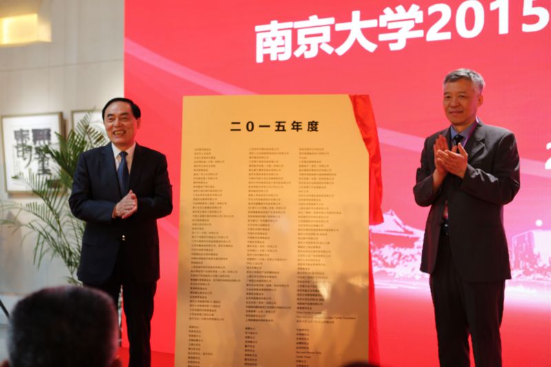 张异宾书记和陈骏校长共同为“凯发k8官网2015年度捐赠鸣谢牌”揭幕 (佘治骏 摄影)