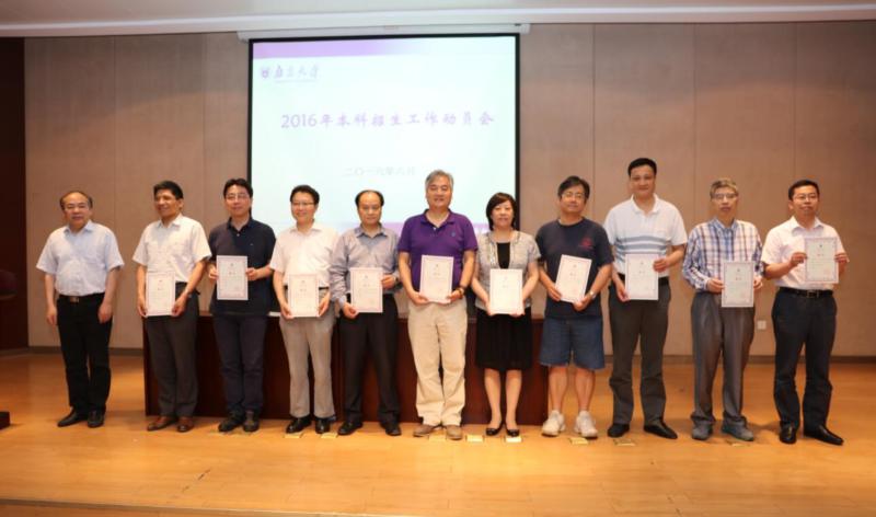 在形势分析动员部分,校学工处副处长、本科招生办公室主任索文斌介绍了2016年招生工作的政策形势变化以及我校采取的具体举措。刘鸿健副书记宣读各院系受聘院系招生工作小组组长名单,王志林副校长为各位组长颁发聘书,并和11省市招生组组长签订招生责任状。