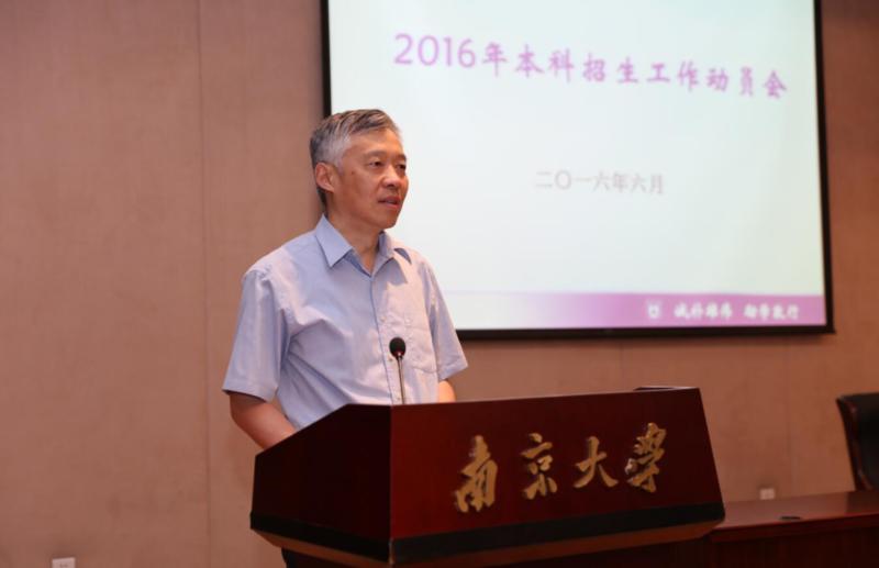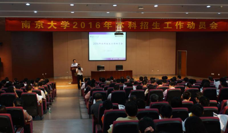6月15日,我校2016年本科招生工作动员会在仙林校区图书馆报告厅召开,校党委书记、本科招生工作委员会主任张异宾,校党委副书记、纪委书记刘鸿健,校党委常委、副校长王志林,校党委常委、宣传部部长王明生,校本科招生工作委员会成员、相关部处负责人、各院系主要负责人、金陵学院招生负责人、本科招生办公室工作人员和各地招生组招生人员与会。会议分为形势分析动员和实务技能培训两部分进行,由学生工作处处长龚跃主持。