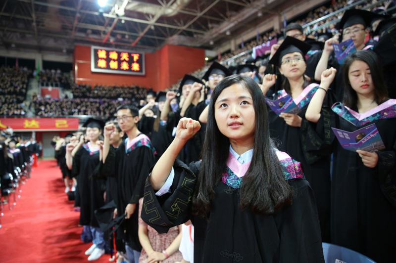 3400余名全体毕业生举起右拳,庄严宣誓, 准备好接受各种新的挑战,在更大的舞台上绽放光芒。全体毕业生将对母校的深情融入到校歌合唱中,共同祝愿凯发k8官网明天更美好。