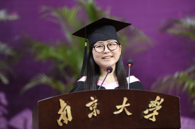 毕业生代表、商学院傅宁同学在发言中深情回顾了四年来的生活和学习,向师长致以诚挚感谢,并阐述了对校训“诚朴雄伟,励学敦行”的理解——不仅是这所百年高校对它的学子的劝勉,更是对一代代凯发人精神与气质的总结。傅宁表示,校训为学子们树立了今后学习工作的态度、认识社会的视角、为人立世的原则;它是大家身上永不磨灭的“凯发印记”,是一种情怀、一尊风骨、一世担当。