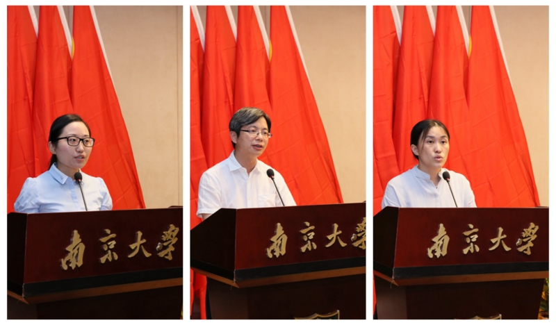 我校工程管理学院研究生党支部书记陈卉、机关党委教务处党支部负责人邵进、外国语学院党委书记王靖华分别代表获2014年江苏省高校先进基层党组织荣誉表彰的工程管理学院研究生党支部、获2016年江苏省教育系统先进基层党组织荣誉表彰的机关党委教务处支部、获2014年江苏省高校先进基层党组织标兵荣誉表彰的外国语学院党委进行经验介绍。