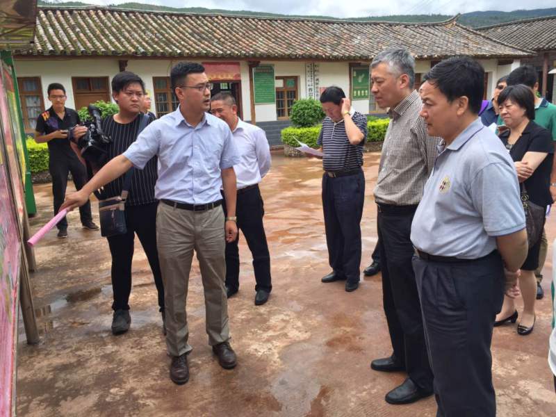 离开双柏一中后,张异宾书记一行冒着冒着倾盆大雨,踏着泥泞的山路,经过一路颠簸来到我校结对帮扶的普岩村。张书记一行首先参观了该村的新农村建设示范点——大罗块村民小组,该示范点的建设过程中充分发挥了党员的模范带头作用,无论是动员群众还是造桥筑路都积极参与走在前列,充分体现了基层党组织的战斗堡垒作用,这就是当地在脱贫攻坚工作中创出的“党建扶贫双推进”工作方法,听取了这些情况介绍后,张书记对这样的工作方法非常肯定和钦佩。