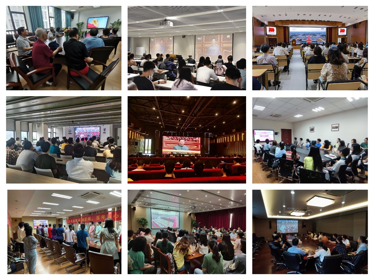 7月1日,庆祝中国共产党成立100周年大会在天安门广场隆重举行。中共中央总书记、国家主席、中央军委主席习近平发表重要讲话。凯发k8官网党委高度重视,在仙林校区、鼓楼校区、浦口校区设置转播点,并部署各院系、各单位安排集中收看。同时,学校食堂等场所均开通电视直播。广大师生员工在仙林校区三江厅、恩玲剧场,鼓楼校区大礼堂,浦口校区图书馆思源报告厅,以及会议室、教室、实验室等场所集体收看大会,聆听习近平总书记在庆祝中国共产党成立100周年大会上的重要讲话,共同庆祝中国共产党百年华诞,回顾光辉历程,展望光明前景。