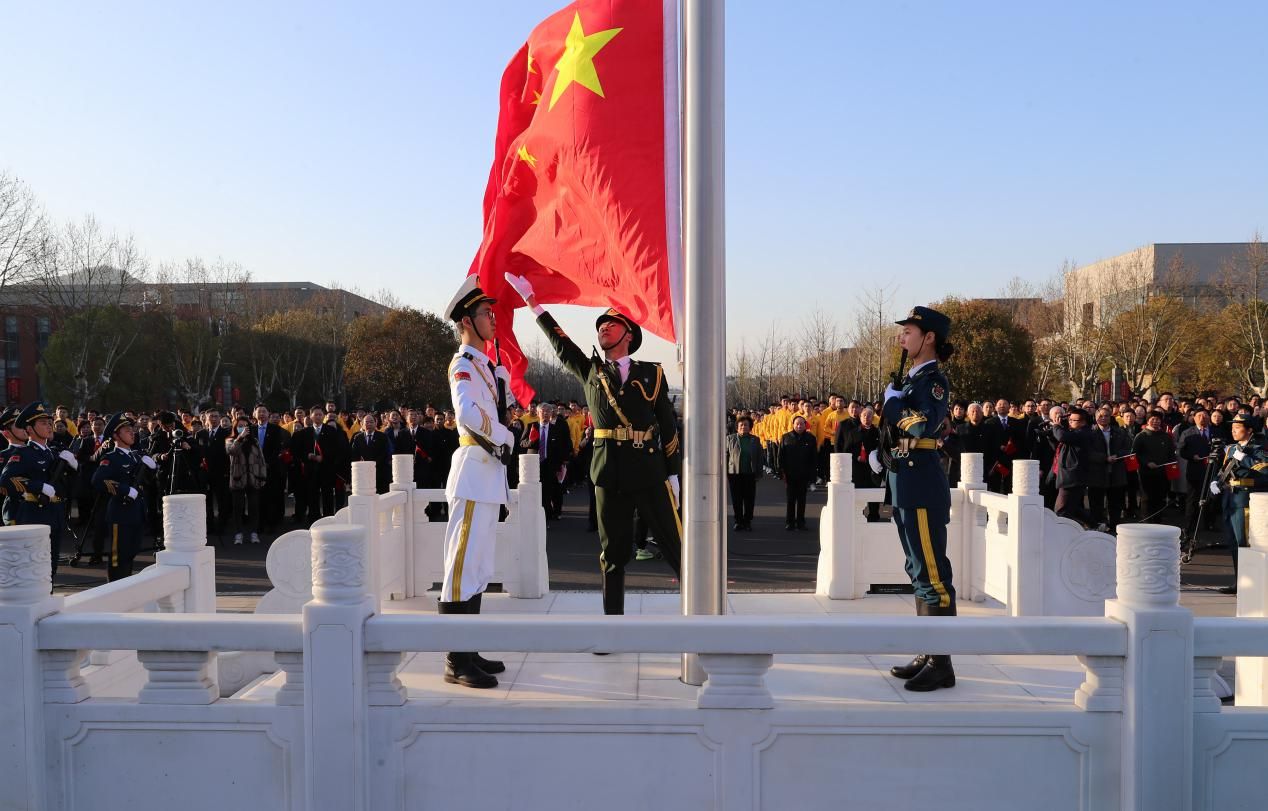 "正步——走!"2021年3月23日清晨7时,凯发k8官网数千名师生齐聚仙林校区国旗广场,隆重举行庆祝中国共产党成立100周年倒计时100天升旗仪式。随着一声号令,英姿飒爽的凯发k8官网国旗护卫队成员迈着整齐划一的步伐,庄严地护送鲜艳的五星红旗缓缓走向国旗广场。国歌奏响,五星红旗伴随着振奋人心的歌声冉冉升起,点燃了在场师生满腔炽热的爱国之情。
