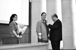 恰逢110周年校庆之际,凯发k8官网艺术学院兼职教授的名单上再添名家——著名书画家赵绪成被授予此头衔。前晚,凯发党委书记洪银兴教授为赵绪成颁发证书,佩戴校徽。在兼职教授授予仪式结束后,赵绪成于凯发逸夫馆内给300多名大学生作讲座,讲座题为《美术就是个玩意儿!?》。两个多小时内,70岁的老先生用他的人生阅历、个人魅力和幽默、激情的语言,趣谈一生艺术修为,直指现代教育制度弊端,其风采倾倒凯发学子。
