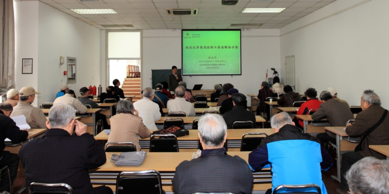 4月15日,我校在鼓楼校区田家炳楼举行居家养老推介会,特邀社会学院社会工作系主任陈友华教授主讲。校老干部党委熊生宝书记、校退休协会卜银敖副理事长及部分退协常委,离退休工作处负责人、部分离休干部和退休教职工代表、社会学院研究生及两家社会养老机构负责人等与会。推介会由校离退休工作处王耀南主持。