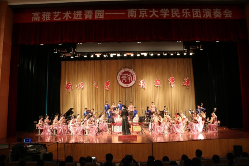 江苏省南菁高级中学也非常重视校园文化和学生艺术团的建设。音乐会中间,由该校同学们表演的《雨碎江南》、《秦淮灯市》技巧娴熟、配合默契,博得了全场热烈的掌声。音乐会后,两校还就学生艺术团的进一步交流达成初步意向。