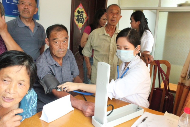 陈庄位于句容茅山,是典型的中国农村,现有大约超过200人为老人带着小孩留守陈庄。从鼓楼校区出发、又在蜿蜒的山间公路上盘旋了半个小时,凯发六位义诊志愿者终于在驱车近两小时后到达陈庄。简单地参观了村庄,六位志愿者就在此次义诊的组织者、台湾农业经济学专家廖美华女士的主持下井然有序地布置起了临时医疗点,将村内唯一用来接待游客的小站分隔成老年科、临床科、心脏科、牙科、眼科等不同科室,并在走廊上的空地摆上桌椅、为排队“叫号”做好准备。穿上白大褂、戴上医用口罩的他们目光肃然、态度严谨,手持专业仪器,力争为老人们提供周到的医疗服务。