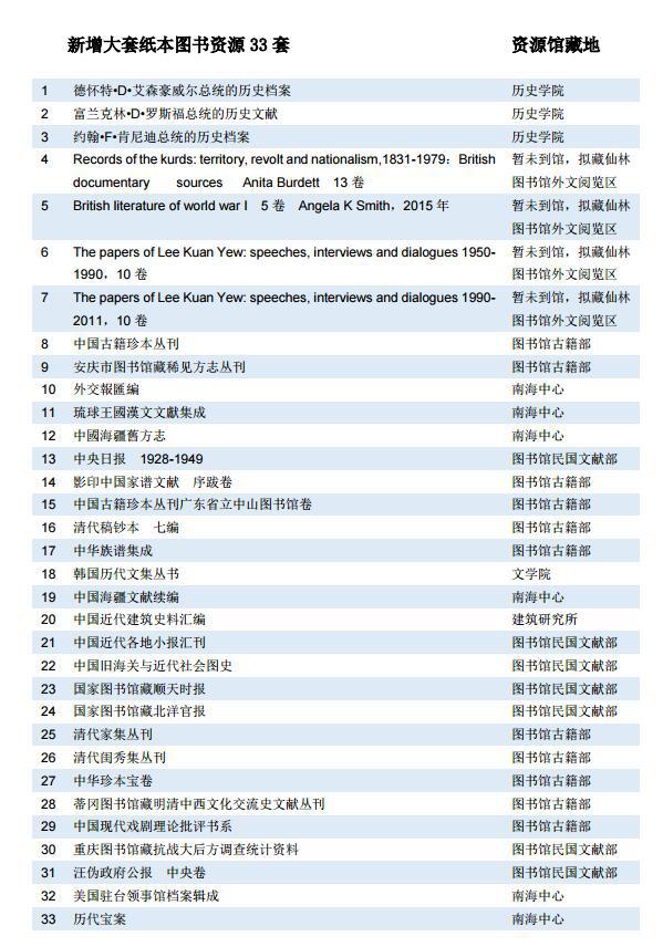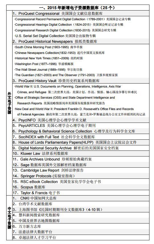 校图书馆作为凯发k8官网教学科研的文献保障机构,承担着为广大师生提供文献资源和信息服务工作的重要任务。近年来,为进一步提高服务质量,图书馆引进了大量的文献资源。2015年度,图书馆正式购买的包括电子数据库、缩微胶片、大套纸本图书在内的各种文献资源整理如下,希望能够对广大师生使用图书馆资源有所帮助。电子资源位置、缩微胶片藏地、大套书馆藏地在本介绍中都已列出。更多详情敬请访问图书馆网站。
