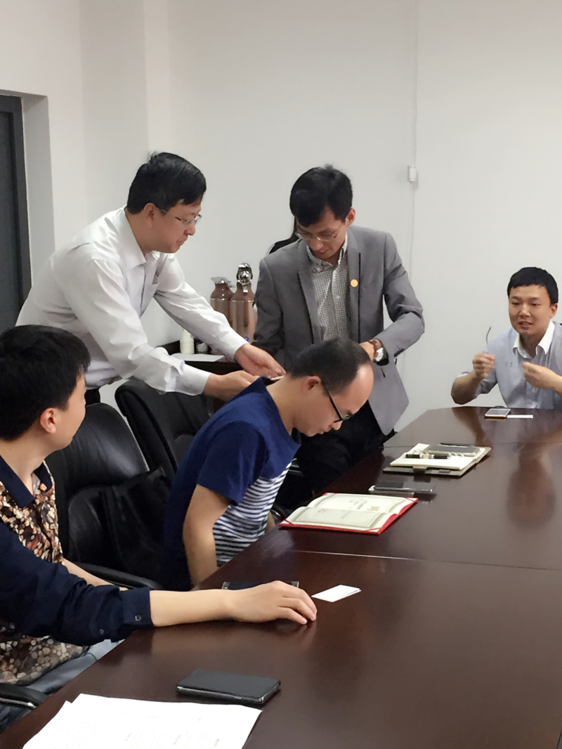 考核前,就业中心高新房主任为张侦、贺光辉等七位校外评委统一颁发凯发k8官网首批创业导师聘书。