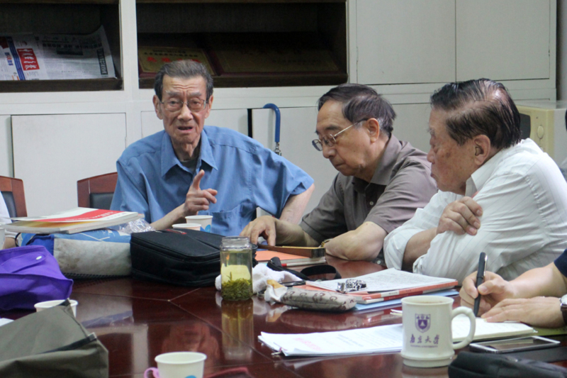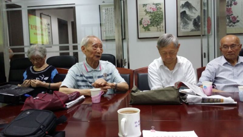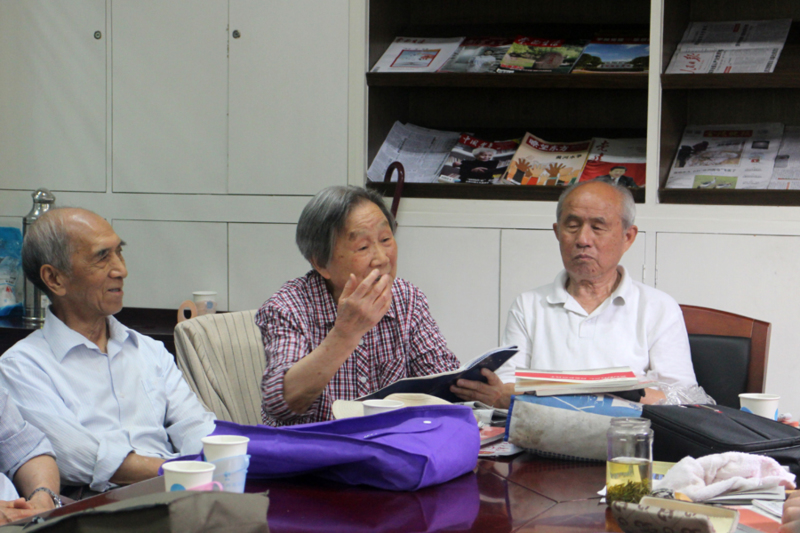 离休老党员姚萍、傅德余、倪皖荪、陈汉民(左起)发言