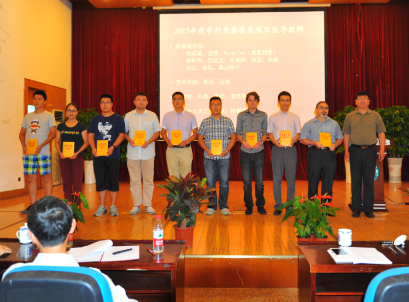 钱国兴、姜辉、赵志宏分别宣读了金陵学院《关于表彰2015年度省普通高校本专科优秀毕业设计(论文)指导教师的决定》、《关于表彰2015年度学科竞赛获奖项目指导教师的决定》、《关于表彰第五届青年教师授课竞赛获奖教师的决定》。陈建群院长、冯维波书记为获奖教师颁发了荣誉证书。