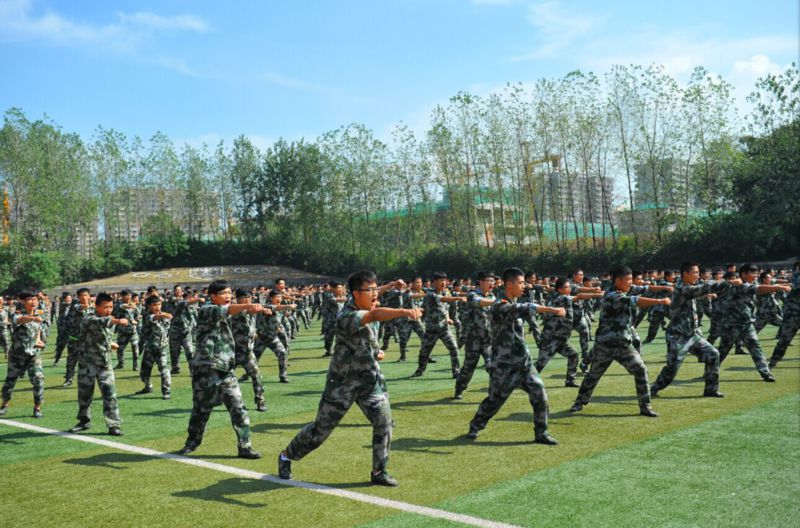 标兵就位后,分列式开始。受训学生分15个方阵接受检阅,他们昂首挺胸,身姿矫健,迈着整齐的步伐走过主席台,展示了昂扬向上的精神风貌。