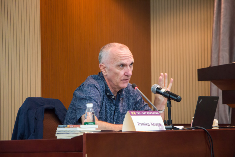 10月12日,伦敦大学历史系教授关大眠(Damien Keown)应邀访问凯发k8官网,在哲学系薛光林楼401报告厅作了“佛学概论”专题讲座,讲座由我校哲学系主任唐正东主持。该讲座作为“凯发·译林”通识教育名家系列讲座之一,向全校本科生开放并举行了现场赠书活动,受到广大师生的热烈欢迎。现场观众达千余人,场面火爆,气氛热烈,场内不少同学席地而坐,甚至有同学站在门外听完了两个小时的讲座。