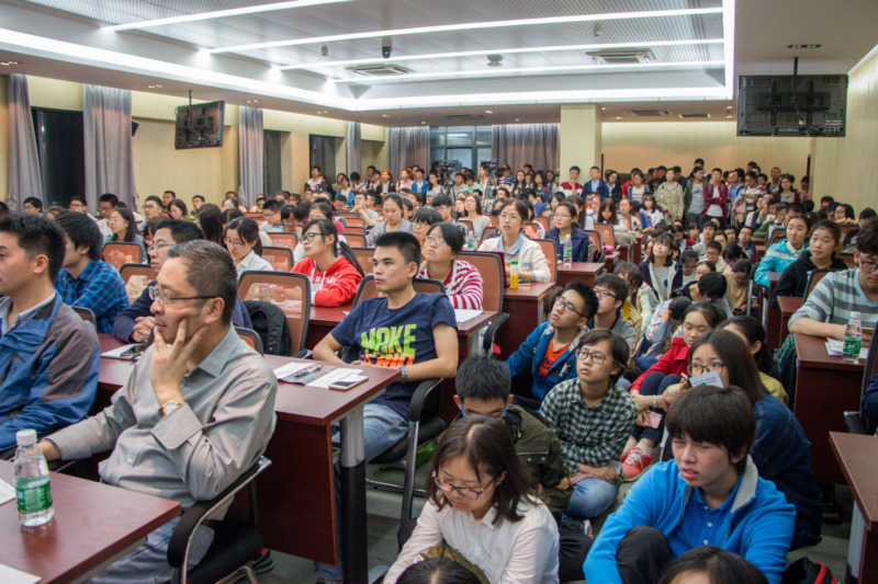 在互动环节,关大眠教授的回答妙语连珠,间或和大家分享自己在学术研究中有趣的经历,风趣的谈吐感染了在场的老师和同学,报告厅内不时传出阵阵轻松的笑声。在最后的签名赠书环节,关大眠教授精心准备了几个用于抢答的小问题,数位思维活跃又敢于发言的同学获得了附有教授签名的“奖品”。