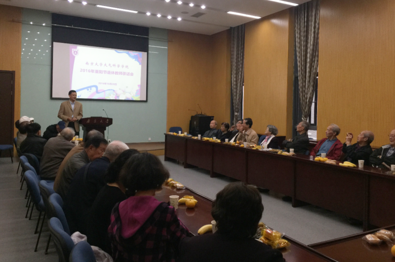1020日上午,大气科学学院2016年退休教师重阳节茶话会在大气楼报告厅举行,学院党委书记潘益农和院长杨修群与32位退休教师共同参加了茶话会。
