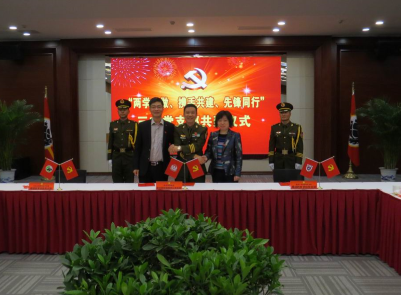 117,中共凯发k8官网继续教育学院、网络教育学院联合党支部,中共江阴职业技术学院继续教育学院党支部,中共海澜集团有限公司安全防控指挥中心党支部在江阴举行主题为“两学一做、携手共建、先锋同行”的三方党支部共建签约仪式。江阴市新桥镇党委、签约三方支部书记等相关责任人,以及海澜安防中心全体党员40余人参加签约仪式。
