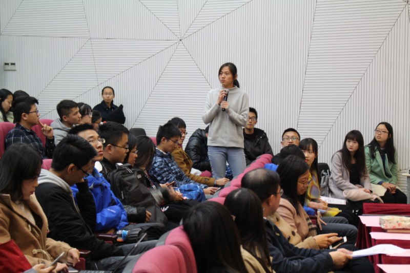 在提问交流环节,现场同学积极发问,从如何将趣味性和工作相结合到如何增强凝聚力和参与度等各个角度提出了自己的困惑,并获得在场优秀团支书代表们的详细解答。活动最后,全体师生合唱共青团团歌《光荣啊,中国共青团》。