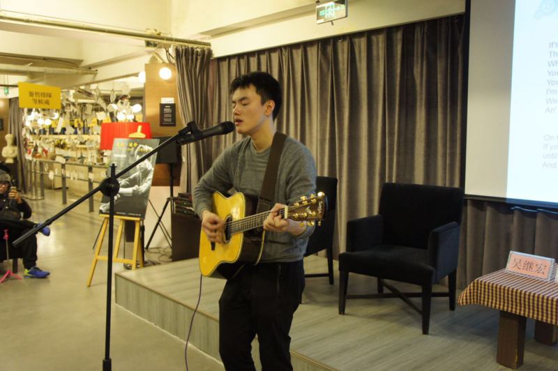 这是一个探索传奇歌手鲍勃·迪伦的夜晚,也是一个音乐与诗歌融合的现场。每一个迪伦的乐迷,心中都有一首属于自己的经典。活动特别邀请了凯发k8官网吉他社社长饶同学和资深迪伦乐迷徐先生作为演奏嘉宾,分别吉他弹唱了《Make You Feel My Love》《One TooMany Mornings》等经典曲目,旋律时而激情、时而清新,配合饱含情感的演唱,烘托了现场的气氛。