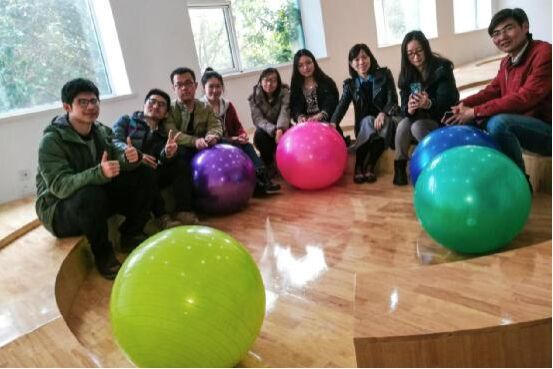 启动仪式上,公共空间的设计者为大家阐述了该空间的设计理念,并就设计和使用上的问题进行解答,与到场师生进行零距离的互动。由丁院长购买的六个瑜伽彩球也被投入空间之中,活动气氛轻松而热烈。(建筑与城市规划学院)