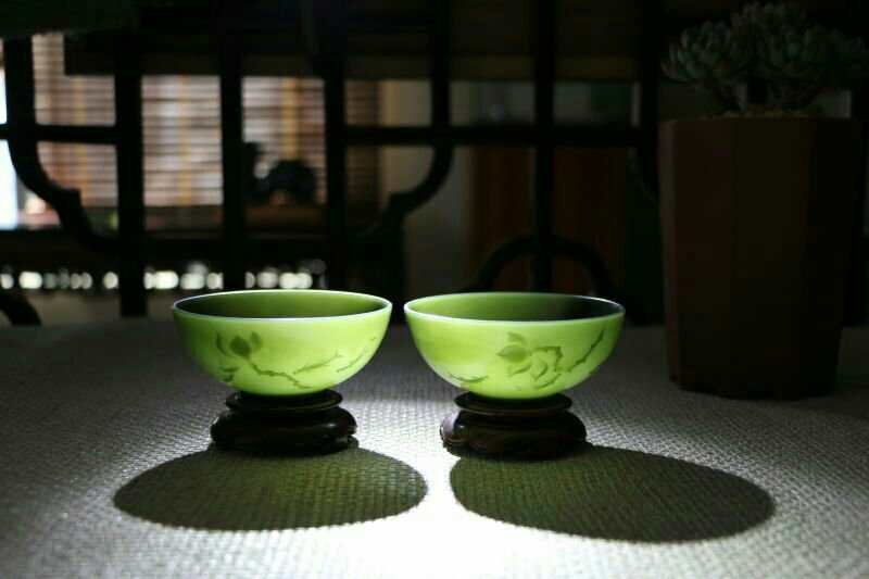 茹月峰,工艺美术师,苏州市玉石雕刻行业协会理事,有“薄胎阿四”的美誉。茹月峰在薄胎器皿的造型款式、纹饰图案、张条刀法等难题攻关上颇多建树,形成了独具个人风格的“水墨画薄胎器皿”。此次茹月峰先生所捐青玉“余乐杯”有一对二只,直径8.8厘米、高度3.8厘米。青玉“余乐杯”取材于青海青玉,杯身有鱼戏莲叶间的浅浮雕纹饰,在灯光下翠绿通透、栩栩如生。(博物馆)