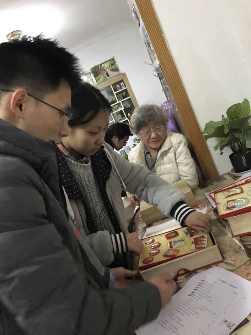 姚平系我校中美中心的离休干部。在清点过程中,她向大家讲述了自己的收藏故事。一直以来,她都对毛泽东主席怀有崇高的敬佩和深切的热爱,所以从很早开始,就有意识地对毛主席像章进行搜集。后来随着收藏经历的不断丰富,她的收藏范围也扩大到邮票、纪念章等,在日积月累的收藏中,姚老师的藏品也更加系统和完整。