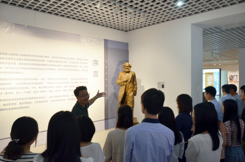 作为江苏省纪念马克思诞辰200周年系列活动之一,本次展览内容丰富、展陈精美,为机关青年们提供了一次在忙碌工作间隙、不出校园便可充分学习的难得机会,机关团委也特别邀请了马克思主义学院青年教师李乾坤进行讲解。在李老师的生动讲述下,机关青年仿佛置身历史的时空,透过80余块展板和百余件实物展品,感知马克思为追求真理和实现人类解放不懈奋斗的一生。