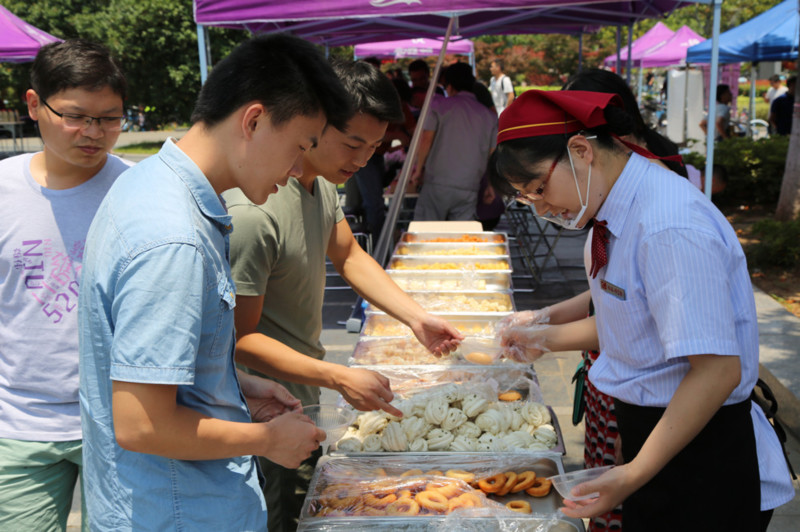 活动当日,尽管天气炎热,但现场依然人头攒动,气氛热烈。据不完全统计,两天的便民服务活动共平价销售绿植800余盆,免费提供美味小食20余种,发放水电安全宣传、健身宣传单200余份,满意度测评200份;配钥匙、擦拭电脑与手机、篆刻印章、车辆保养咨询等所有项目共计服务师生千余人次。