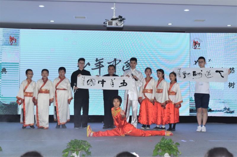 活动在独具特色的古风伴奏中开启帷幕,国学导师和小学员代表在悠扬的乐曲中诵读“诫子书”并进行礼仪展示,展现中华优秀传统文化,凸显了中华民族追求伟大复兴中国梦的不竭追求。