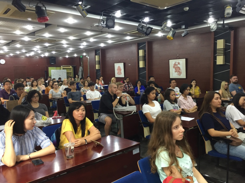 2018年9月11日,海外教育学院在曾宪梓楼101室举行2018年中国政府奖学金新生开学典礼暨入学说明会,海外教育学院负责人,2018级中国政府奖学金新生、海外教育学院教师代表、后勤集团工作人员代表等80余人参加典礼。
