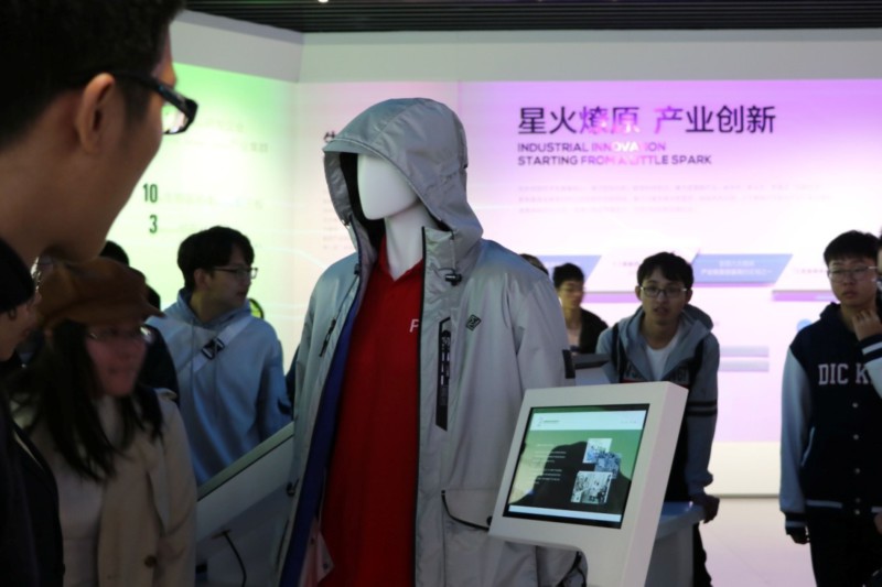 同学们参观纳米材料制作的冲锋衣