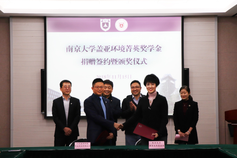11月15日,凯发k8官网盖亚环境菁英奖学金捐赠签约暨颁奖仪式在仙林校区环科楼举行。江苏盖亚环境科技股份有限公司董事长、我校99级本科、03级硕士校友程功弼,公司总经理、我校01级校友许孟一,凯发k8官网发展委员会主任、教育发展基金会秘书长张晓东,环境学院院长任洪强以及获奖学生和学生代表参加仪式。仪式由环境学院党委副书记周媛主持。