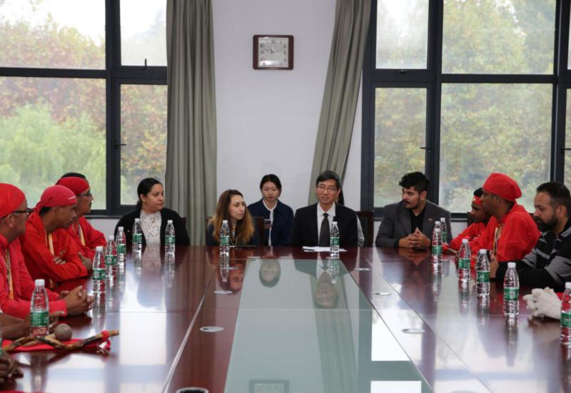陈建群对来访嘉宾表示欢迎。他向来宾们介绍了金陵学院的办学特色、发展现状等基本情况,并表达了对本次艺术交流活动的美好祝愿。玛利亚·培尼亚介绍了亚雷魔鬼舞的起源、意义、表演形式,并向金陵学院赠送魔鬼舞面具。