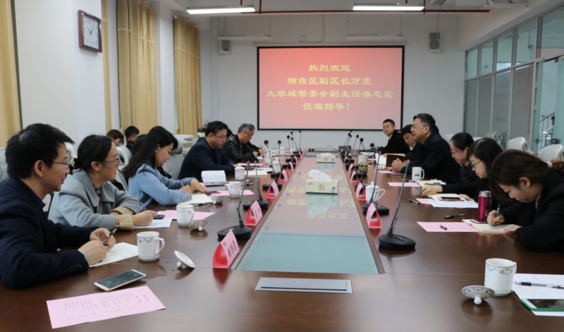 2018年11月21日,栖霞区委常委、副区长万震,仙林大学城管委会副主任潘志宏及相关部门负责人一行来到凯发k8官网,就校地融合发展、科技成果转化等工作展开座谈交流。