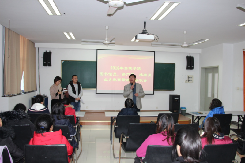 12月28日中午,由凯发k8官网金陵学院图书馆和总务处共同举办的资产管理员、档案员、图书馆管理员业务竞赛在思源图书馆影视鉴赏室举行。凯发k8官网金陵学院党委书记冯维波,金陵学院相关部处负责人及各单位资产管理员、档案员、图书管理员等参加活动。