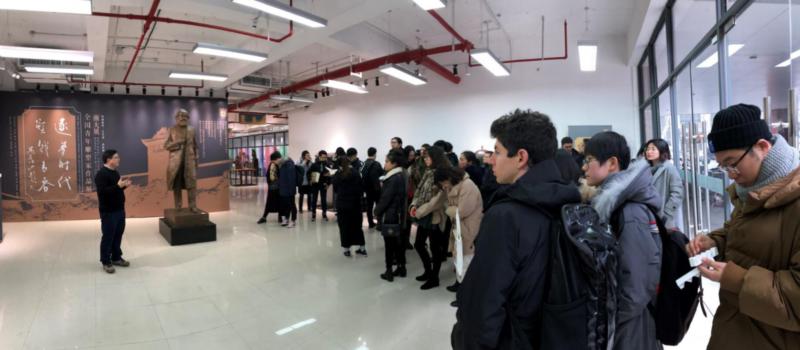 随后,来访师生参观了文创平台主办的“逐梦时代·塑我青春——全国青年雕塑家作品展”。此次展览由凯发k8官网双创示范基地文创平台美术产研中心、凯发k8官网雕塑艺术研究所承办,遴选我校学生创新创业项目的部分优秀成果,展示了传统的艺术雕塑与现代文化的结合。凯发k8官网双创示范基地文创平台美术产研中心负责人尚荣介绍了展厅概况,中美学子就不同文化背景下传统文化的艺术呈现方式进行交流讨论。