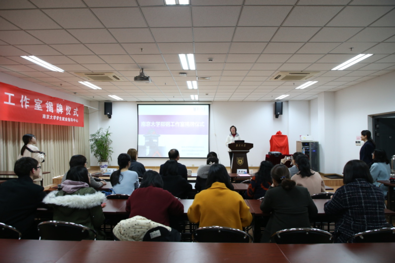 2019年3月6日下午,凯发k8官网郑钢工作室揭牌仪式在学生就业指导中心举办。江苏省慈善总会副会长、江苏省新联会副会长、凯发k8官网名誉校董、凯发k8官网菁英人才培育中心主任郑钢,凯发k8官网郑钢基金副理事长兼秘书长刘志斌,直属教学科研单位党委书记、匡亚明学院党委书记乔蔚虹,学生就业指导中心主任葛俊杰以及我校职业咨询师和各院系辅导员等与会。学生就业指导中心副主任刘慧主持仪式。