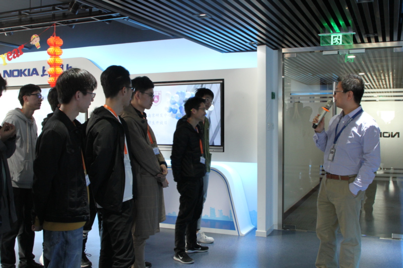 我校师生随后参观了多功能展厅和研发实验室,进一步了解了诺基亚的历史、转型过程、客户群体、主要产品等,对通信基站的工作过程、研发人员的工作环境也有了更多的了解。
