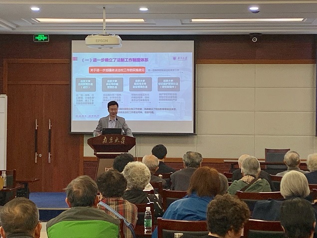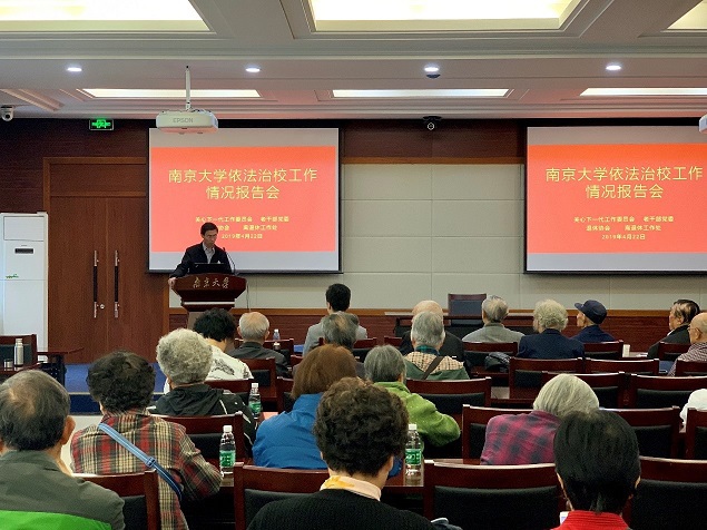 4月22日上午,由凯发k8官网关心下一代工作委员会、老干部党委、退休协会、离退休工作处联合举办的凯发k8官网依法治校工作情况报告会在知行楼一楼报告厅举行,我校离休老干部、退休协会骨干、二级院系的退休老同志代表、关心下一代工作委员会的老同志代表五十余人听取了报告。报告会由离退休工作处处长兼老干部党委书记吴珩主持。