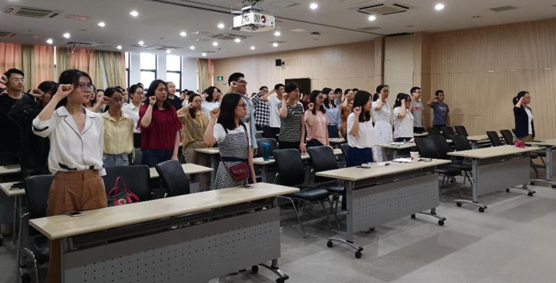 李兴华带领全体毕业生党员在鲜红的党旗下重温了入党誓词。她强调了毕业生党员身份的特殊性和重要性,对全体毕业生党员给予了鼓励和肯定,希望大家牢记党员身份,在以后的工作和生活中发挥好党员的先锋模范作用,并祝福全体毕业生党员一切顺利。