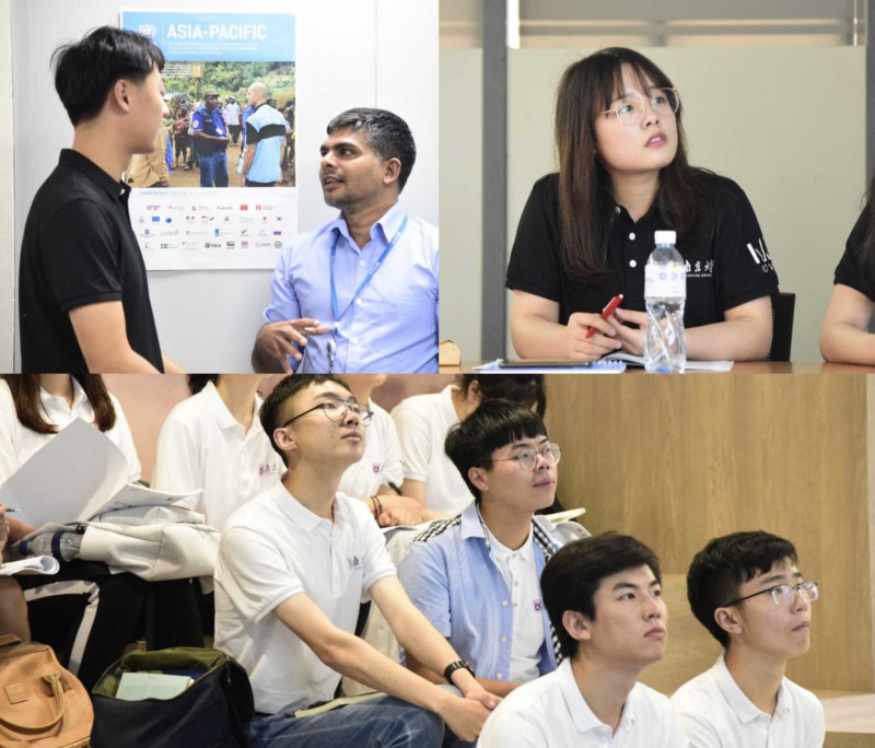 22日上午,参访团接连访问了联合国粮农组织(FAO)和联合国儿童基金会(UNICEF)两大国际组织。在联合国粮农组织亚太区域代表处,FAO信息管理专员Ms.Rachele Oriente介绍了联合国粮农组织的概况以及创建发展过程,区域项目官员廖崇光从联合国粮农组织的中国项目切入,介绍中国与联合国粮农组织的关系。人力资源处官员Mr. Vladimir Navara进一步介绍了粮农组织的工作与未来发展。同学们与粮农组织官员就中国参与全球治理、与粮农组织合作科研项目等问题进行交流,区域项目负责人姚向君同在场官员一起细心解答。